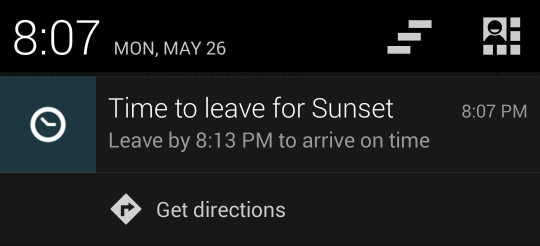 So, I decided to create some Google Calendar “appointments” for myself, using R and specifically the sunrise.set() function (thanks Carlos!). Because I’m a big user of Google Now, this means that–based on my location and travel time–my phone will buzz at me and tell me to leave for the Promenade in time to see the sunset.